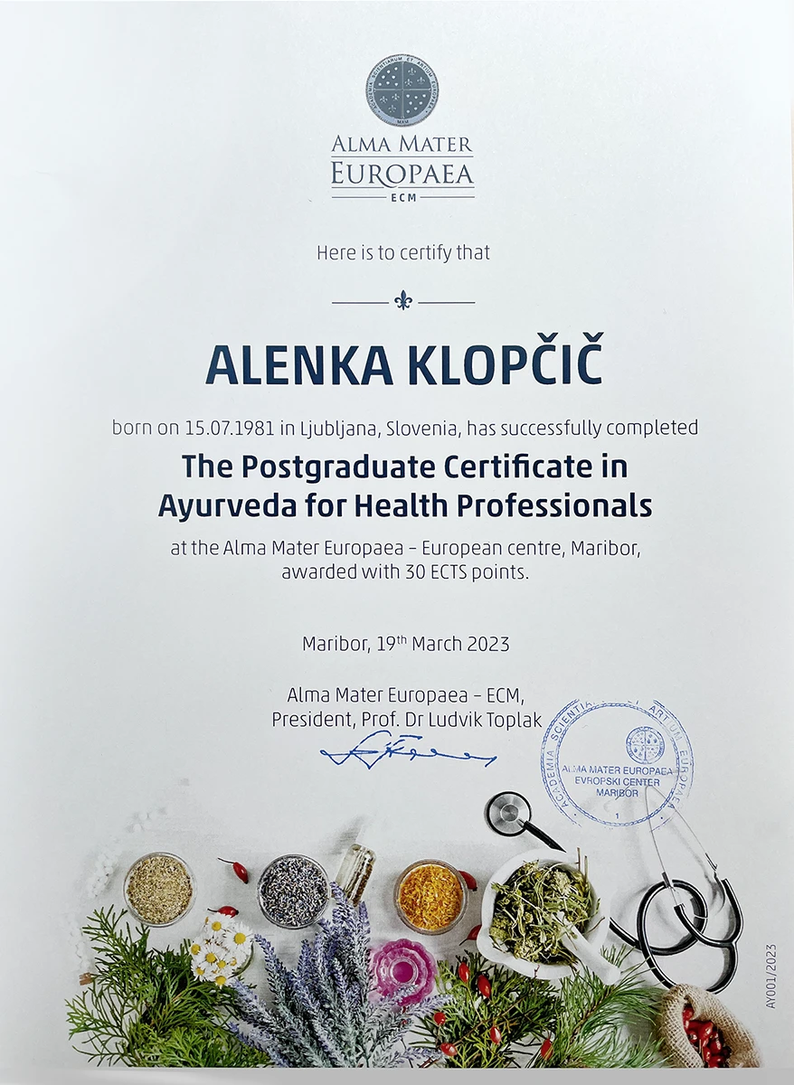 Nekje na poti svojega otroštva sem imela tudi psička. Pa je moral tudi on od nas. Izgubila sem tudi njega. Kar nekaj izgub za otroka, a prav izkušnje, ki mi jih je prinesel omenjeni del izgub, so me vodile v odraslost. Nekje na tej Poti se »mi je zgodila« še ajurveda (ajurveda je starodavna veda o življenju), ki sem jo spoznala po padcu – simbolnem in dobesednem, ki se je, kot bi se znani 'coach' Robbins, pred njim pa še številni drugi misleci, zgodil »zame« (in ne »meni«). In padci so nam najbrž vsem znani, kajne? Nekaterim tudi tako močni, kot jih prinese čustvena bolečina ob izgubi življenjske ljubezni; moja sorodna duša se je namreč po 22 skupnih letih fizično poslovila z zemeljskega sveta v začetku leta 2023. In padce zaznavamo vsak po svoje – tako kot je vsak človek zase svet oz. lahko bi rekli tudi zvezda ali pa sonce svojega lastnega življenja. Zato je ta predstavitev mene lahko tudi predstavitev Tebe. V delu, ki seveda resonira s Tabo in s tvojo Potjo. S Tvojo Resnico.