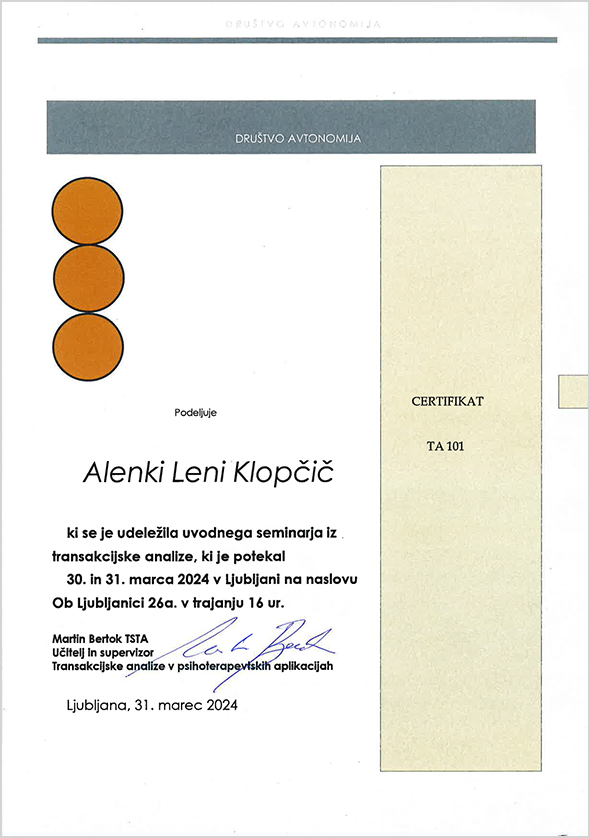 Cena celotnega programa, ki vključuje 8 srečanj v trajanju 90 min, je 1.100 EUR.