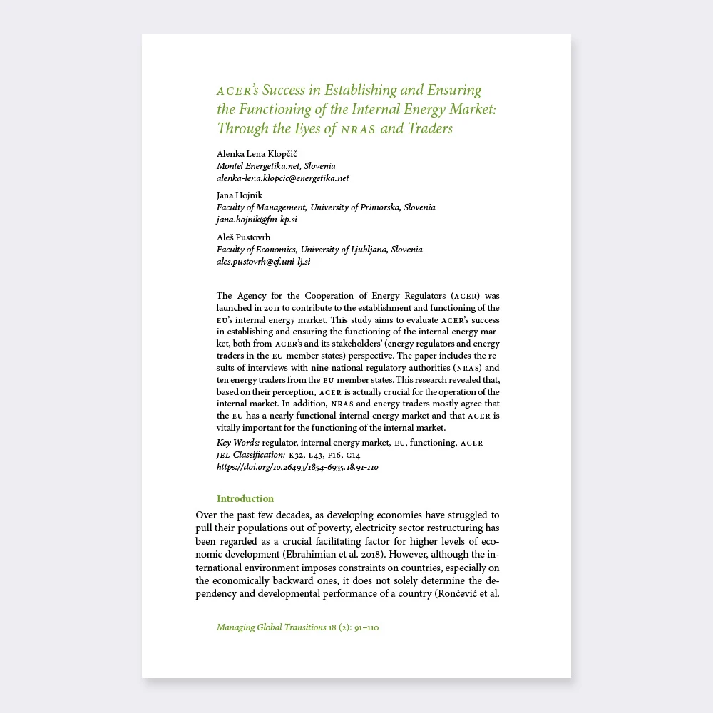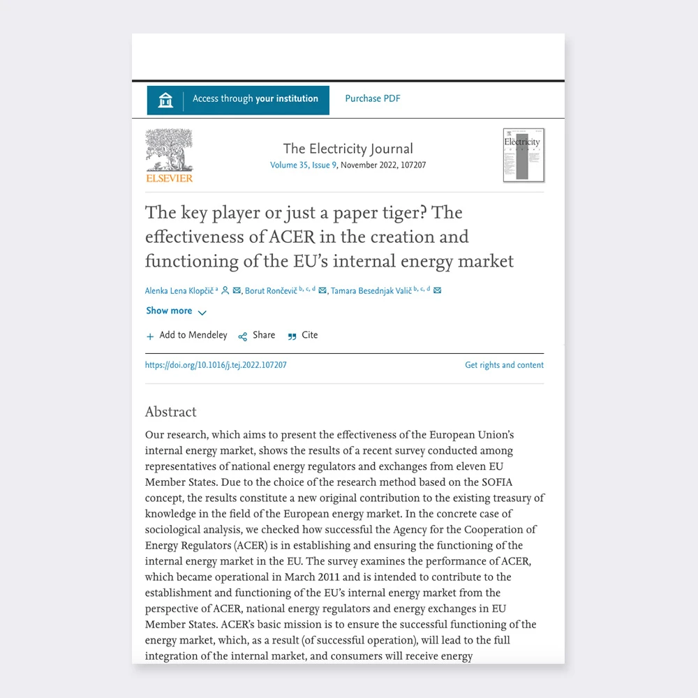 The key player or just a paper tiger? The effectiveness of ACER in the creation and functioning of the EU’s internal energy market