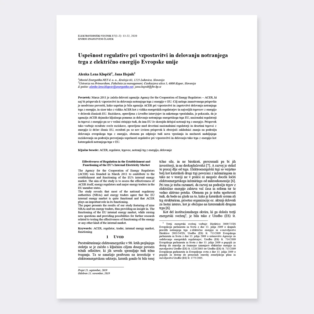 Uspešnost regulative pri vzpostavitvi in delovanju notranjega trga z električno energijo Evropske unije