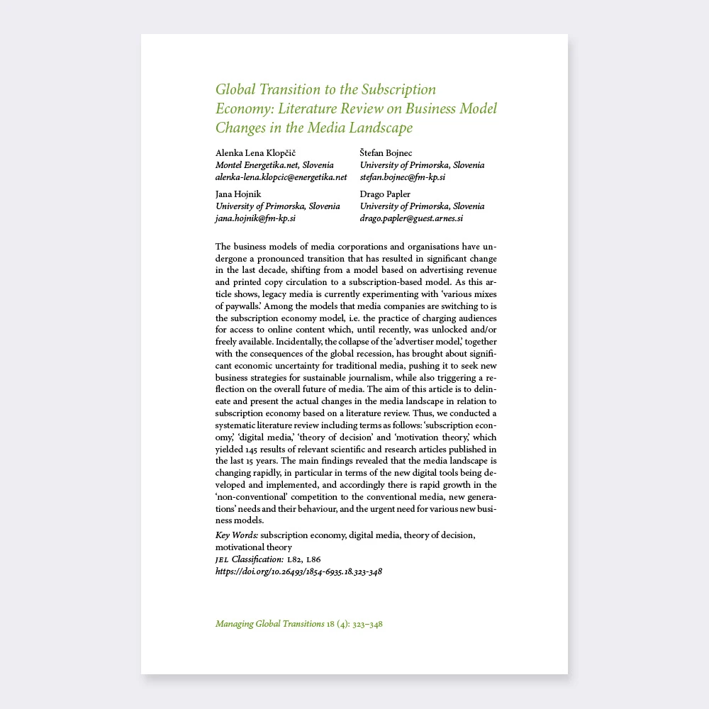 Global Transition to the Subscription Economy: Literature Review on Business Model Changes in the Media Landscape
